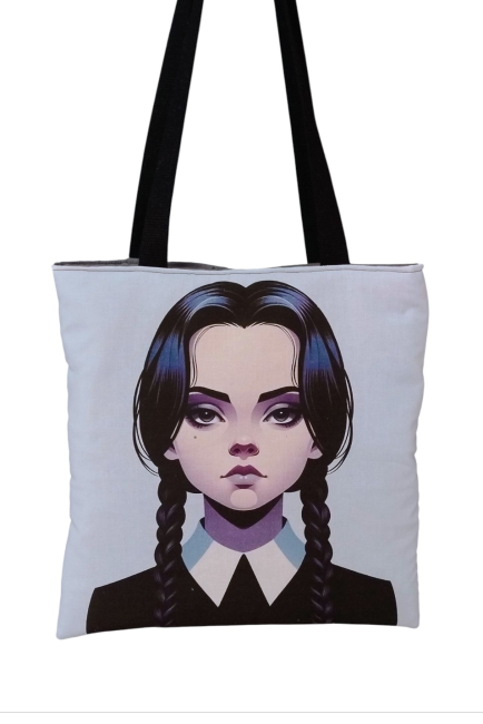 Tote bag en tissu 100% coton noir avec flocage loup tribal bleu