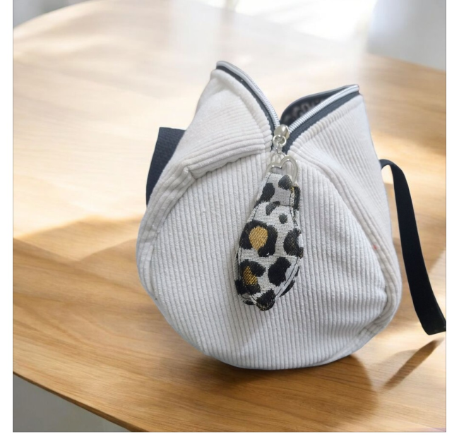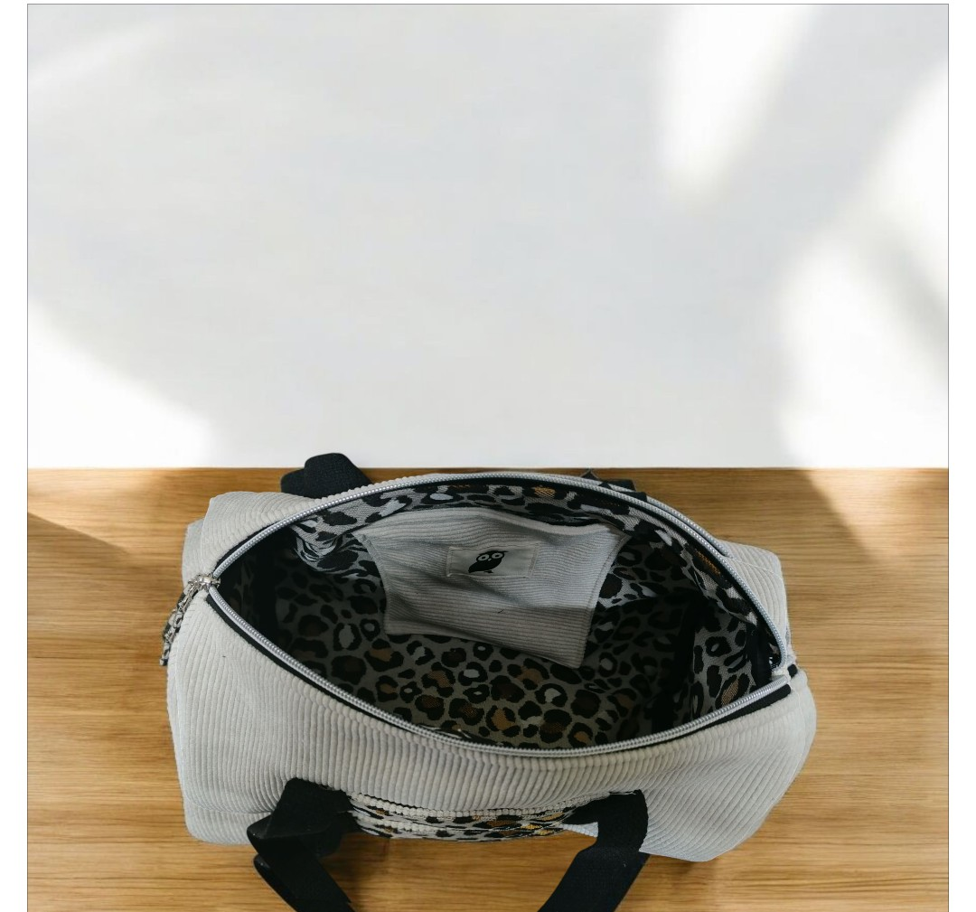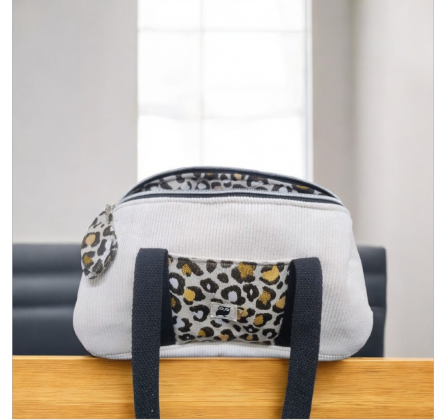 Sac bowling en velours côtelé & jacquard léopard