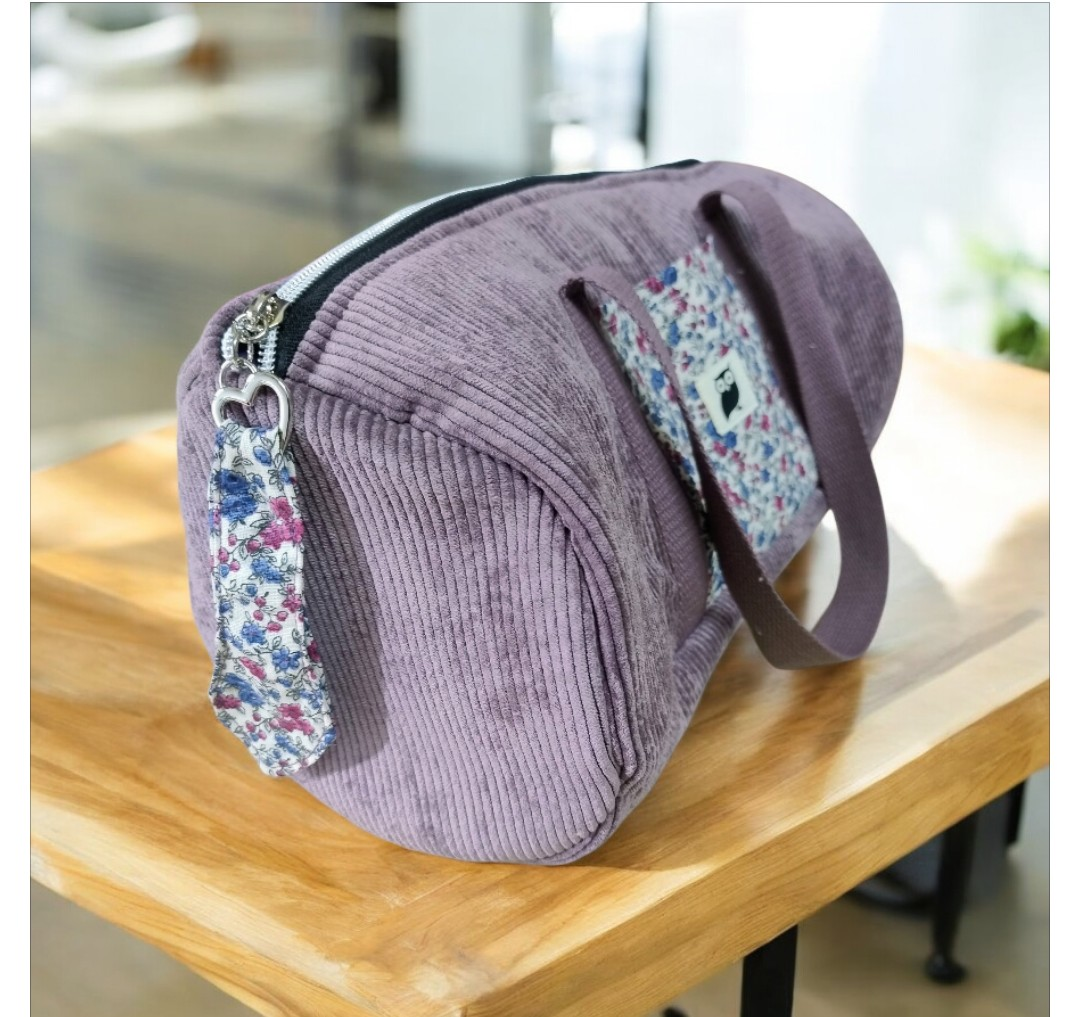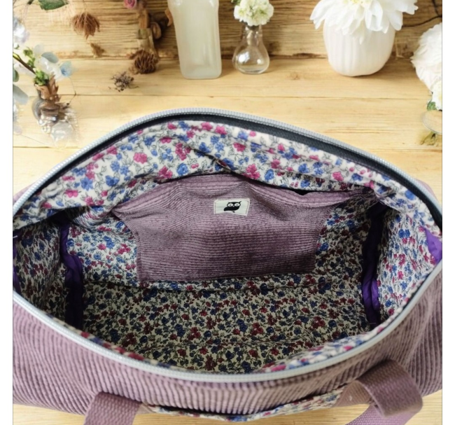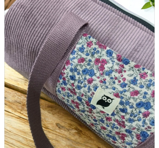 Sac bowling en velours côtelé mauve & tissu liberty