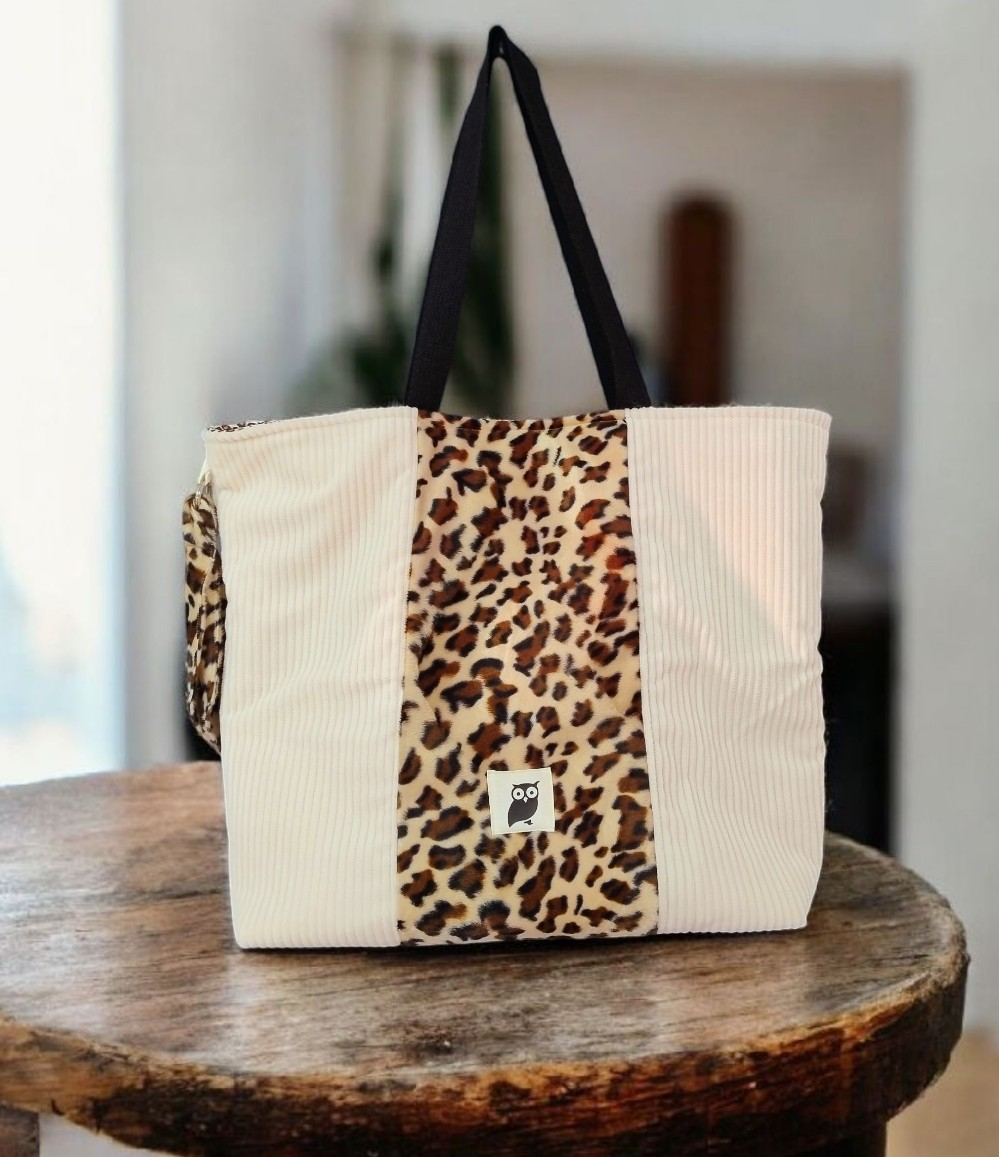 L’intérieur est entièrement doublé d’une cotonnade léopard, pour un rendu aussi soigné que pratique.