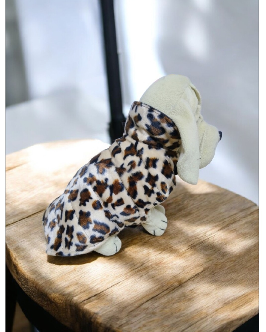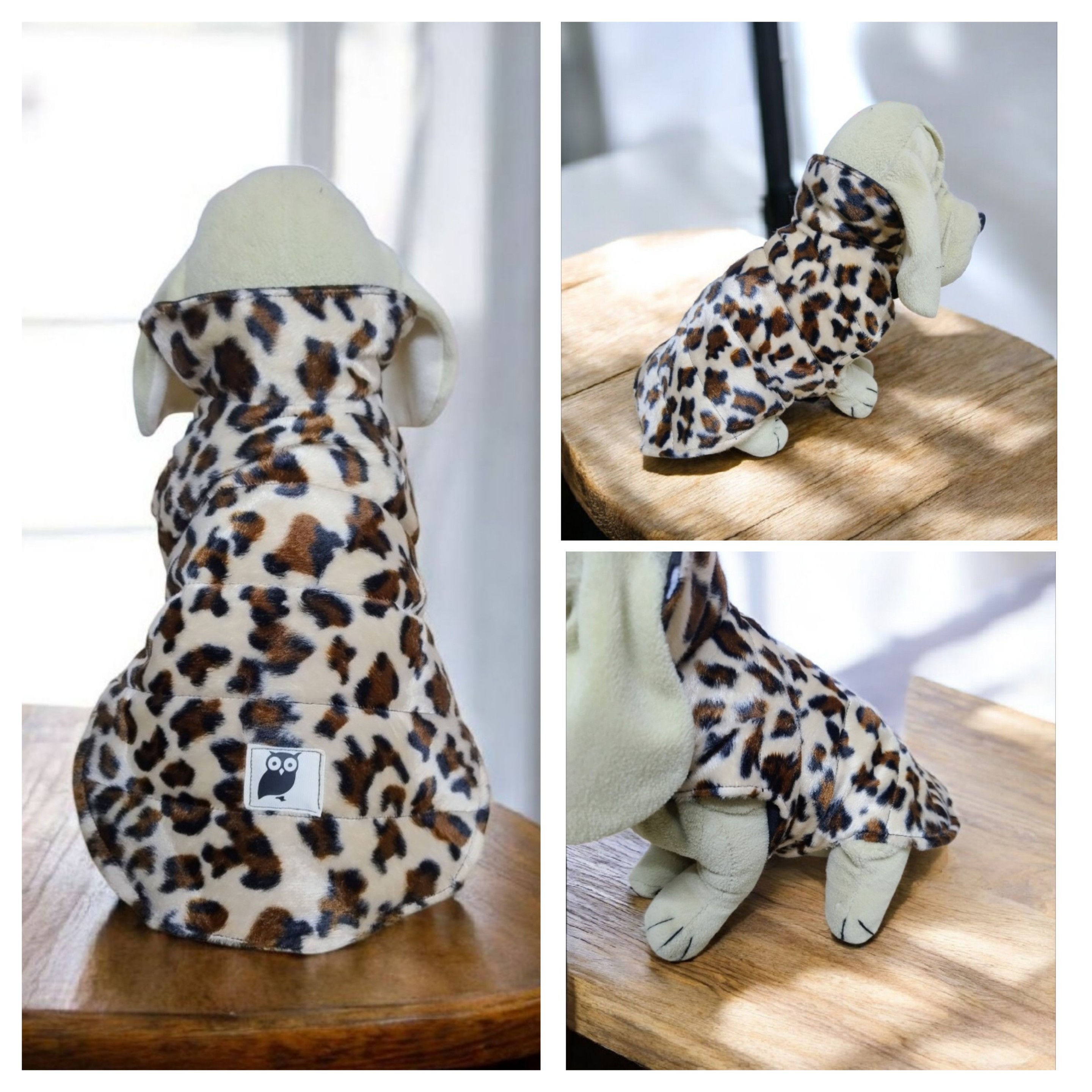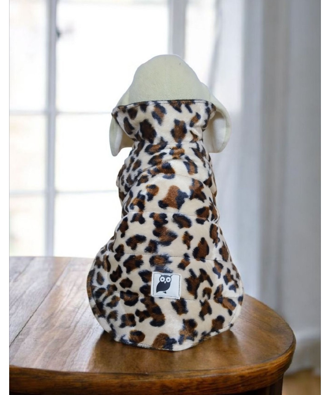 Ce modèle chaud et tout doux est confectionné dans un tissu imprimé léopard,