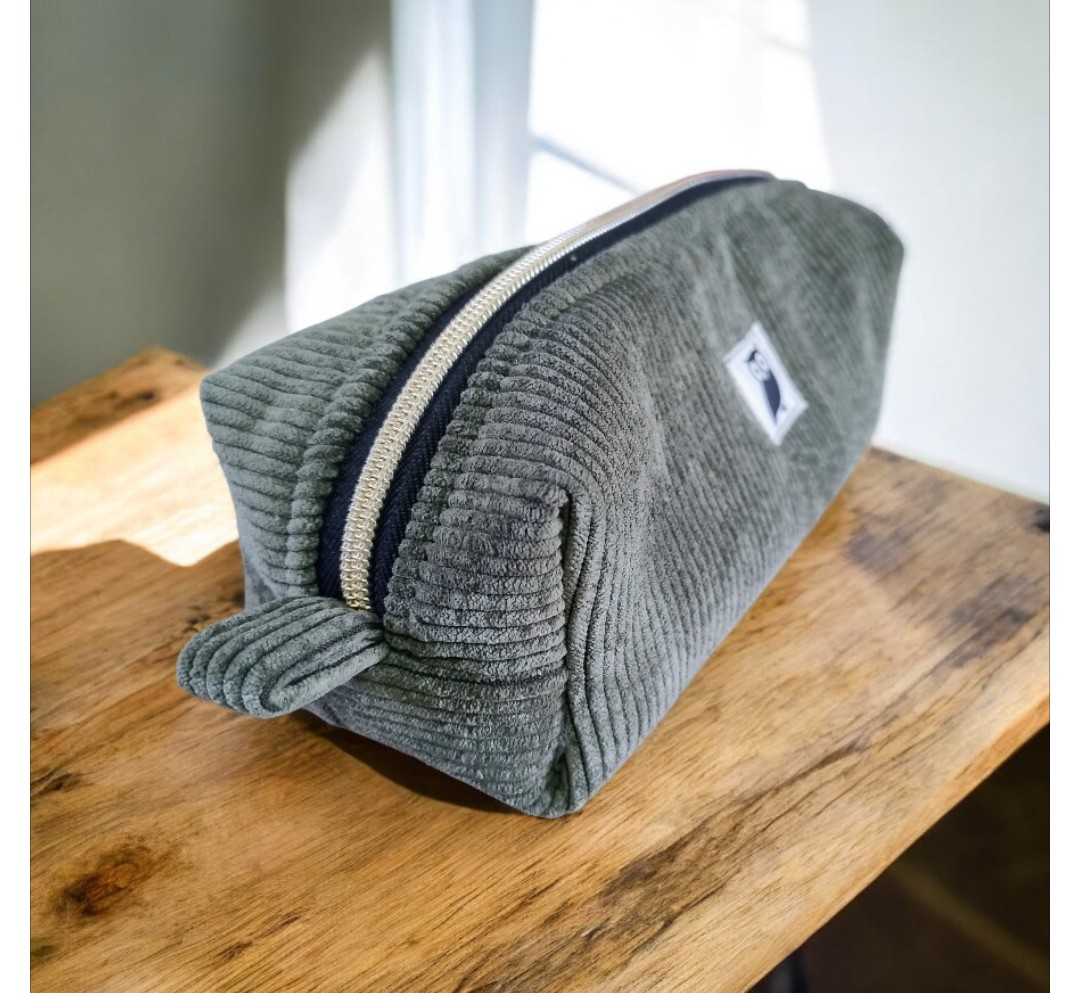 Cette trousse matelassée en velours côtelé vert sauge allie douceur, tenue et élégance naturelle.