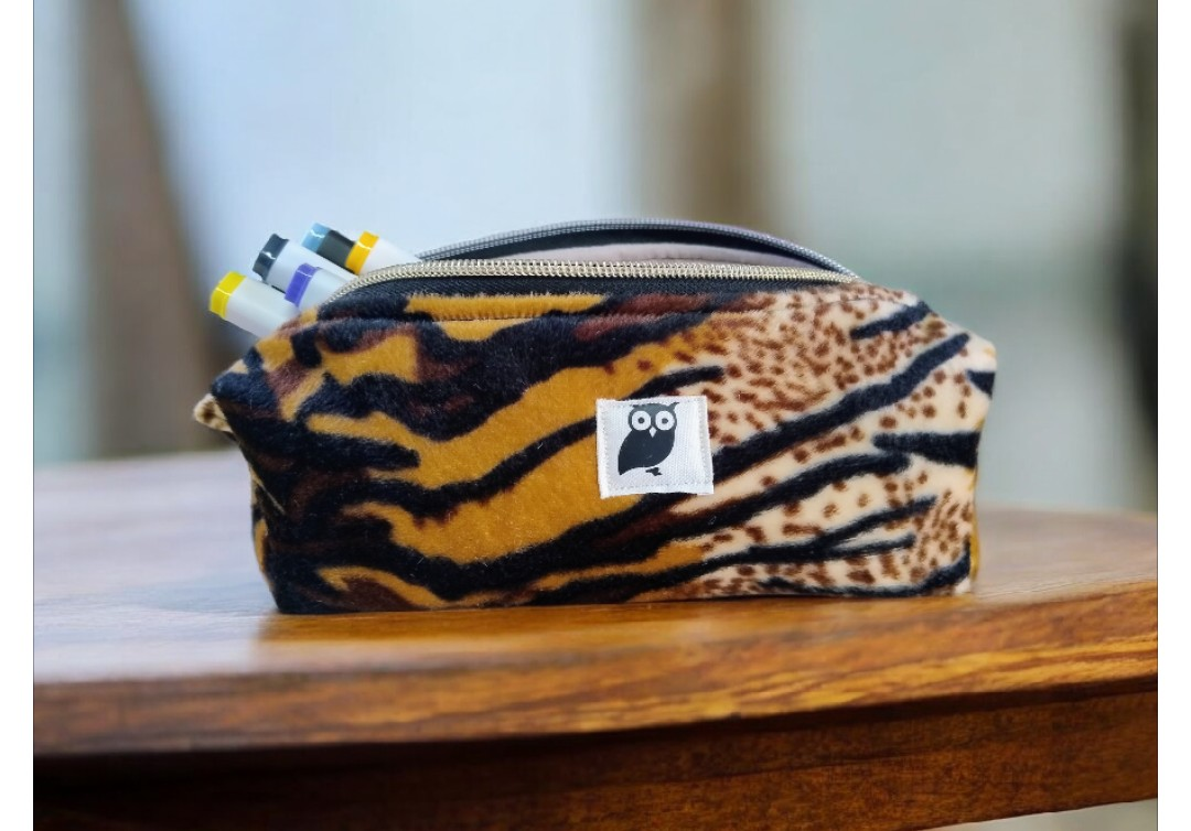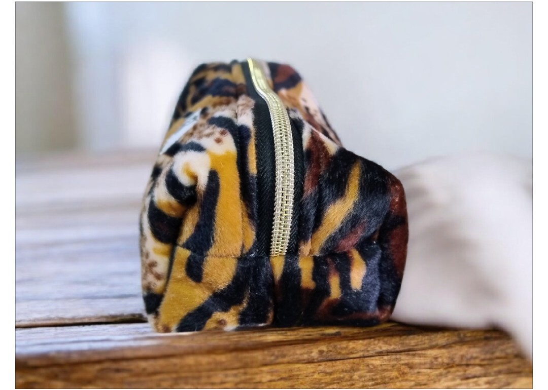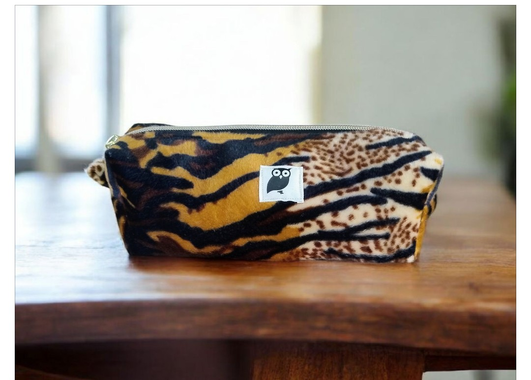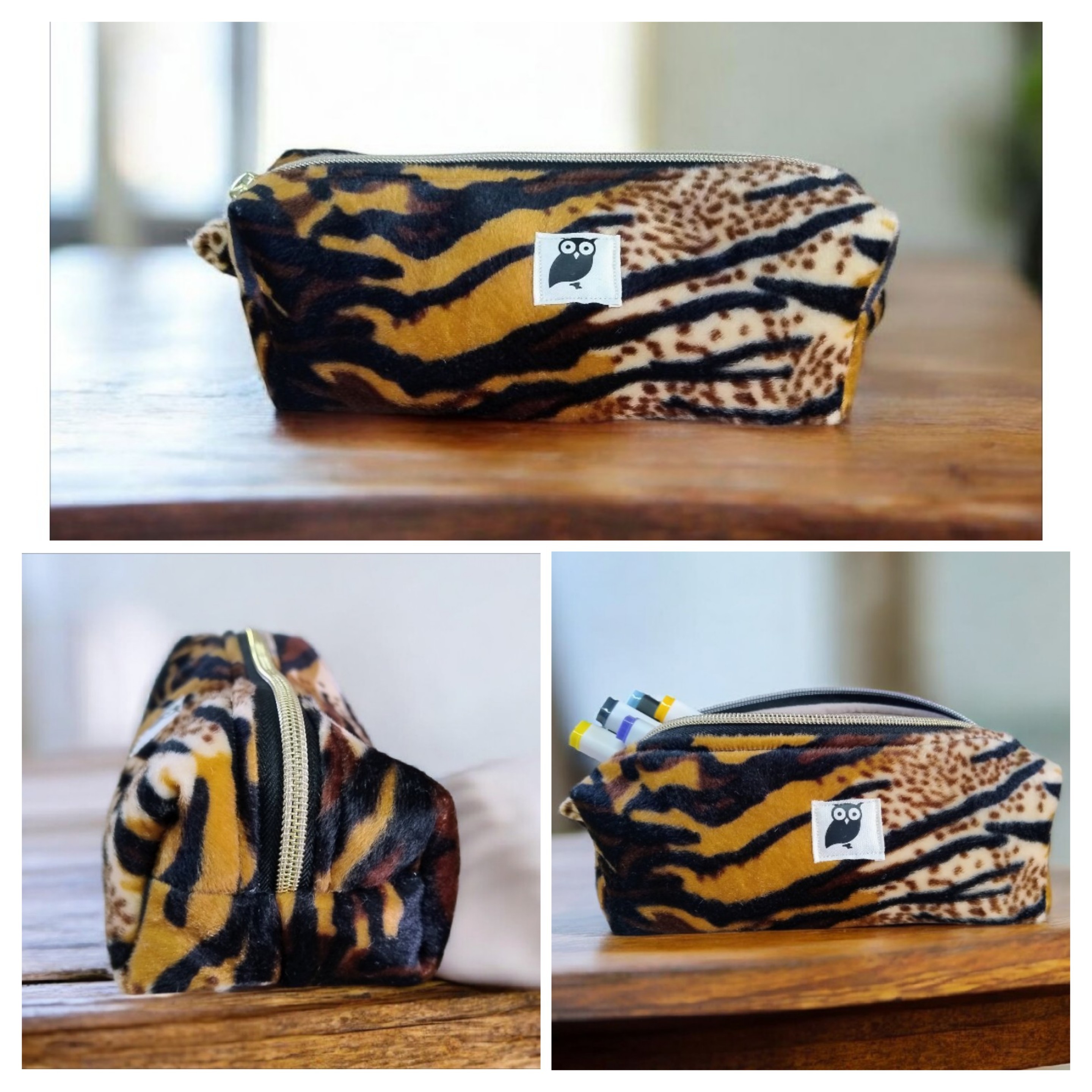 🐯 Trousse matelassée – Motif Tigre (tissu doux texturé) –